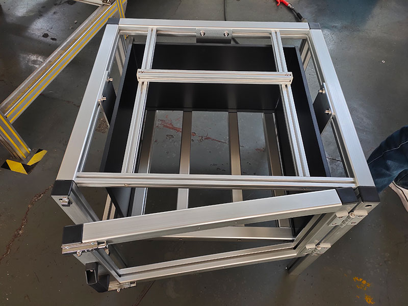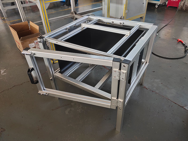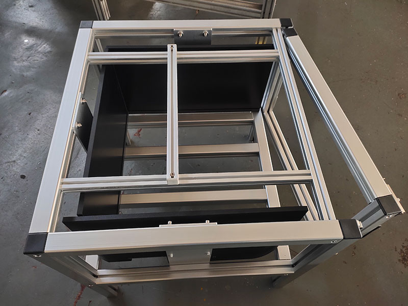 鋁型材框架制作的實驗柜,四面安裝液晶顯示器,內部放置實驗動物,觀察動物在播放不同畫面時候的狀態。