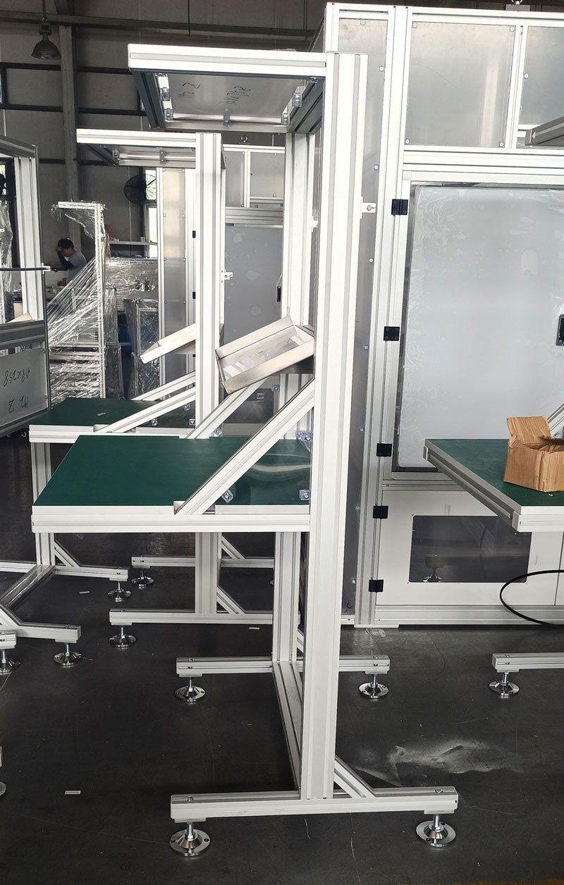 工業(yè)鋁型材工作臺應用在生產流水線上、檢驗區(qū)域等工業(yè)操作區(qū),可以定制交互式工作臺,防靜電工作臺,抽屜式工作臺,重型工作臺,電氣工作臺,實驗室工作臺等。