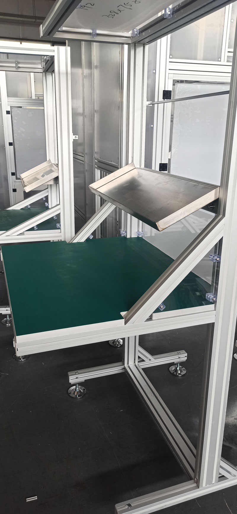 鋁型材工作臺是一種以鋁型材為骨架的組合式工作平臺,以高度的靈活性和穩(wěn)固性在工業(yè)領域得到廣泛應用。鋁型材工作臺桌面一般采用密度板和防靜電綠皮搭配使用。框架一般使用鋁型材30系列或鋁型材40系列。采用外角件或螺栓連接,桌面可安裝線槽及插座以及電器設備電燈或風扇,看板可以用亞克力板固定在槽內,選用支撐件如腳輪或尼龍蹄腳方便移動和固定。