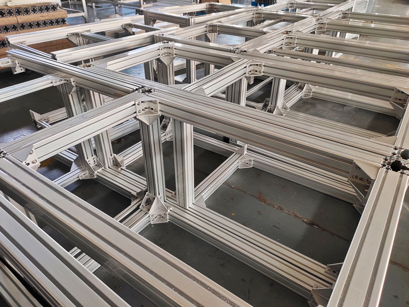 鋁型材規格眾多,搭配鋁型材專用連接件,可實現自動化鋁型材機柜的快速組裝,而且經過陽極氧化的鋁型材,抗磨耐腐蝕,增加了鋁型材機柜的使用壽命,搭配其他輔件,如腳輪等,可以快速進行移動,非常方便。