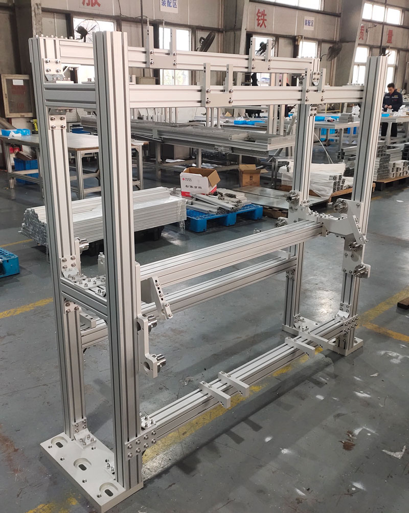 鋁型材框架搭建方法大致分成兩種,一種是按照圖紙,遵循主要結構先組裝,次要部分后增加的規律;另外一種如果搭建大型設備框架的話,需要遵循從下往上組裝的方法;這兩種方法不同之處就是型材組裝方向的不同,方法都是一樣的,都是要用到配件連接。