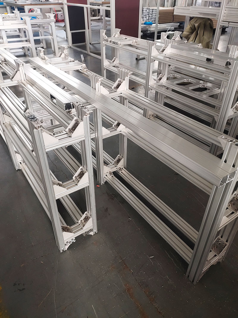 工業(yè)鋁型材流水線機架的應用場景很多,如電腦裝配線、空調(diào)裝配線、汽車輪胎裝配線、手機裝配線、化妝品輸送線、食品輸送線等。不同的應用場景代表不同的輸送形式。使用鋁型材定制裝配線機架可以靈活設計,滿足不同工廠車間的使用要求。